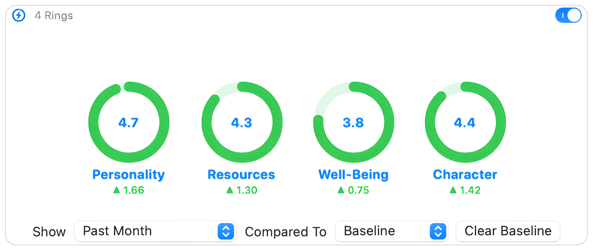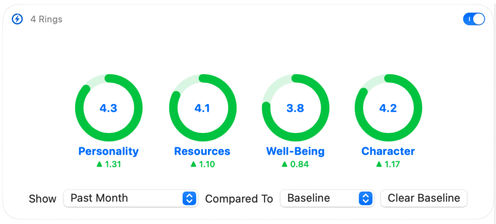 When you allow it, the AI Coach scores journals on the 4 Rings.